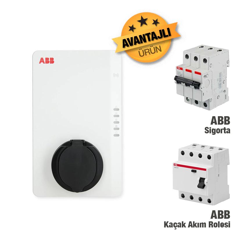 Terra Ac 22 kW Duvar Tipi Elektrikli Kablosuz Araç Şarj Ünitesi+Abb Basıc 3X40 Amper Sigorta +40 Amper Kaçak Akım Rolesi